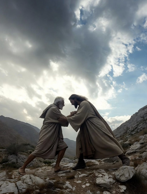 In the darkness, a mysterious man wrestles Jacob until dawn. Neither prevails until the man touches Jacob’s hip, dislocating it. Yet Jacob clings, demanding a blessing. The man asks his name: “Jacob.” Then renames him Israel, for striving with God and men and prevailing. Jacob calls the place Peniel: “I have seen God face to face, and yet my life has been delivered.” He limps away, forever changed.